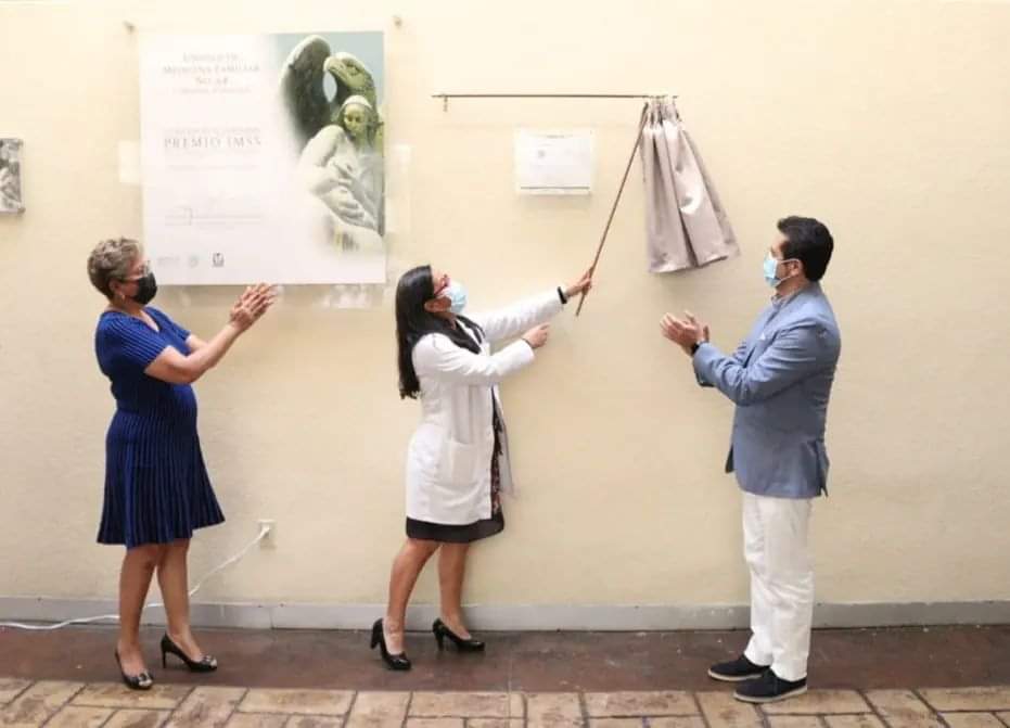 En la Unidad de Medicina Familiar (UMF) No. 64 de Córdoba, la directora doctora Mariana Torres Carro junto las autoridades institucionales y sindicales descubrió el reconocimiento por obtener el Premio IMSS a la Competitividad.