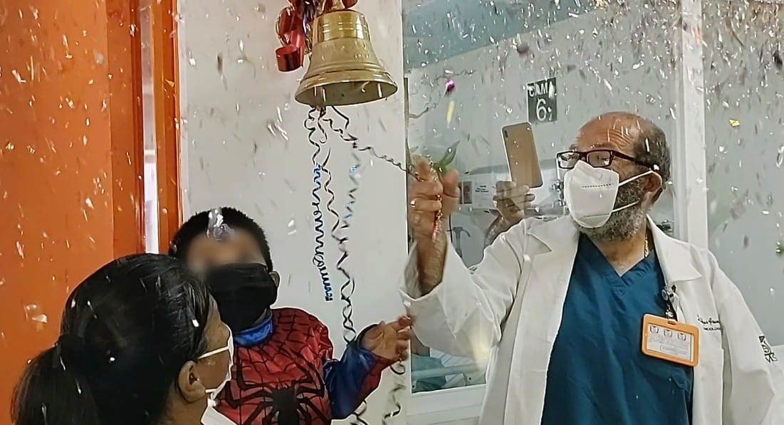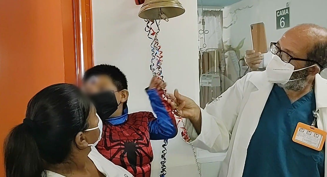 Aarón, de 4 años, ganó la batalla contra la leucemia linfoblástica aguda luego de tres años de tratamiento, fue así que vestido de súper héroe hizo sonar la campana del Centro de Referencia Estatal para la Atención del Niño y de la Niña con Cáncer (OncoCREAN), es la primera vez que sonó en el Hospital General de Zona (HGZ) No. 36.