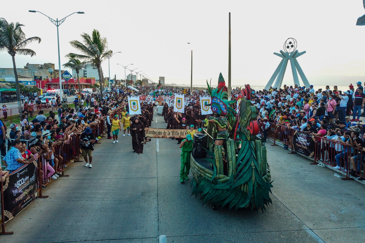 Coatzacoalcos, Ver.- El malecón de Coatzacoalcos recobró vida y diversión con la presencia de más de 50 mil personas que disfrutaron del desfile conmemorativo “El retorno de Quetzalcóatl”, de los “500 años Fundación de la Villa del Espíritu Santo”.