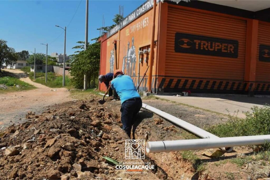 Personal de la Comisión Municipal de Agua y Saneamiento (CMAS) de Cosoleacaque, realizaron la colocación de tubería de manera manual, para el abastecimiento de agua potable domiciliaria, en el Predio Hato Nuevo de este municipio.