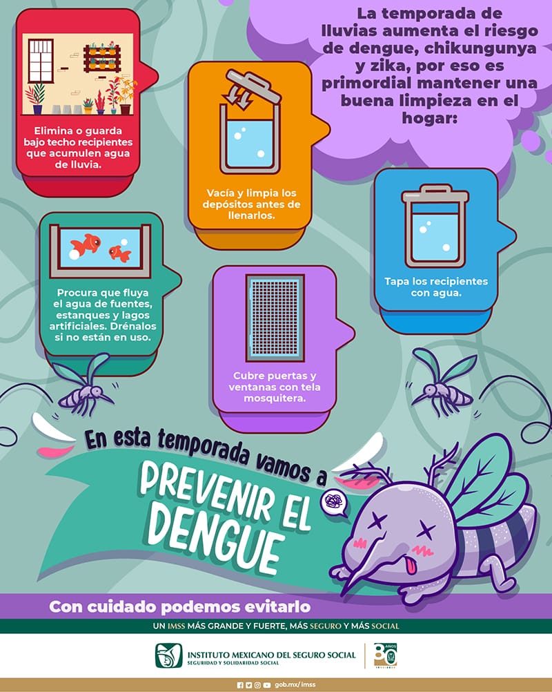Además de la limpieza de maleza en patios y jardines, y eliminar cualquier criadero potencial de dengue, el IMSS en Veracruz Sur recomienda colocar mosquiteros en puertas y ventanas, el uso de repelentes y al anochecer cubrir piernas y brazos para evitar picaduras.