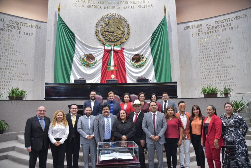 En el Recinto Oficial de Sesiones, los diputados Jaime Enrique de la Garza Martínez, Luis Ronaldo Zárate Díaz y Marco Antonio Martínez Amador, presidente secretario y vocal de la Comisión Permanente de Atención y Protección de Periodistas, condujeron el desarrollo del acto.