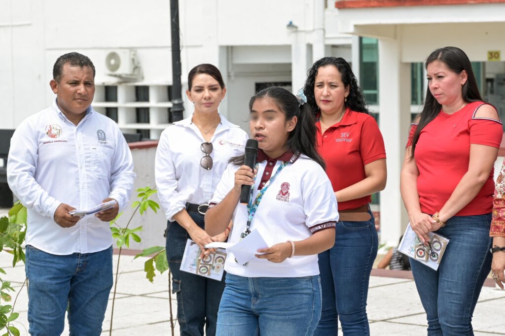 Posteriormente, la alumna del Cobaev 68, Flor del Carmen Rafael Guillén, leyó una poesía; el estudiante del Cetis 79, Salvador de Jesús Zacarías Escudero, interpretó la canción ‘Baila por un árbol’; y el diputado federal, Enrique Villegas García, leyó el juramento al árbol.