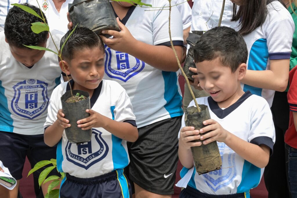 Por último, las autoridades de los tres órdenes de gobierno entregaron los árboles a los niños. El evento incluyó donación de semillas para fomentar los huertos de traspatio y un área de composta para enseñar a los niños a elaborarla.