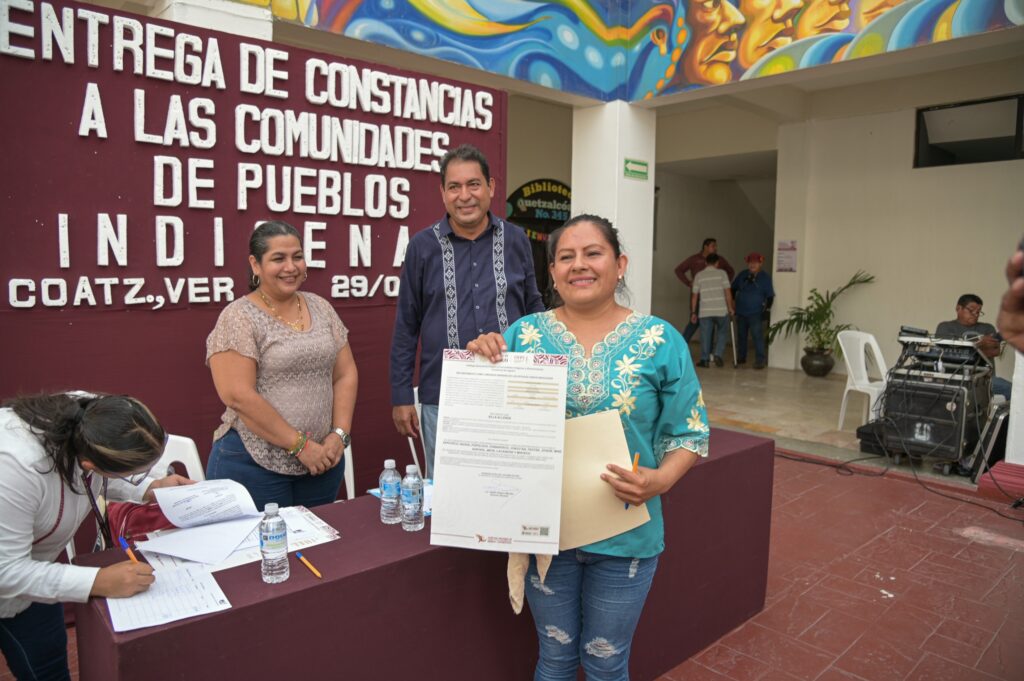 Coatzacoalcos, Ver., 30 de julio de 2025.- Habitantes de Villa Allende y de las congregaciones de Mundo Nuevo y Las Barrillas recibieron sus constancias del Instituto Nacional de Pueblos Indígenas (INPI) con las cuales ingresan al Catálogo Nacional de Pueblos y Comunidades Indígenas y Afrodescendientes, permitiéndoles acceder a programas y apoyos federales.