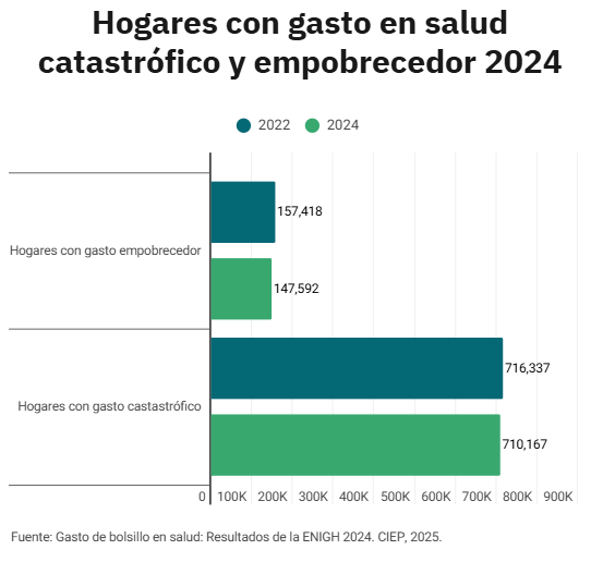 Aunque a nivel nacional el gasto catastrófico de los hogares disminuyó en 2024 respecto a 2022, en las familias más pobres, ubicadas en el nivel de ingresos más bajo, tuvo efectos negativos y 20,000 hogares adicionales empobrecieron por costear cuidados de salud.