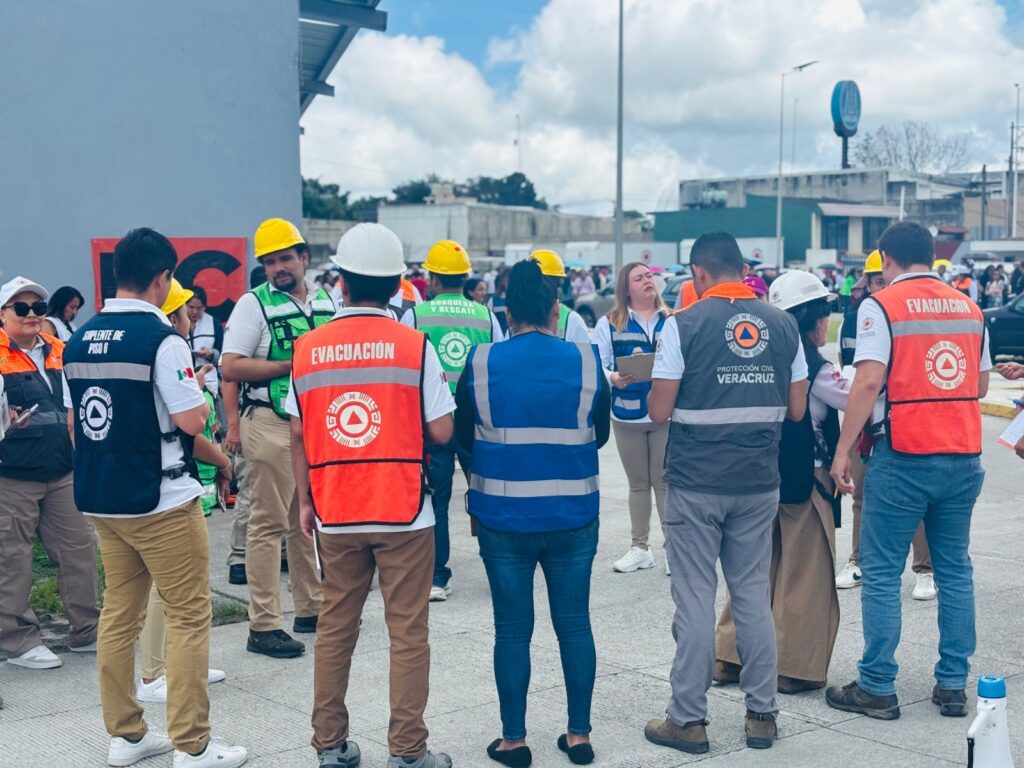 Desde Palacio de Gobierno, los secretarios de Gobierno, Ricardo Ahued Bardahuil, y de Protección Civil, Guadalupe Osorno Maldonado, en representación de la gobernadora Rocío Nahle García, encabezaron la evacuación de 764 personas, 686 trabajadores de oficina, 46 de obra y 32 visitantes, hacia el Parque Benito Juárez, de manera ordenada.