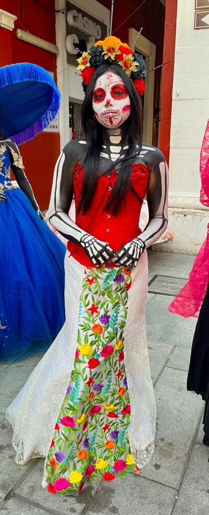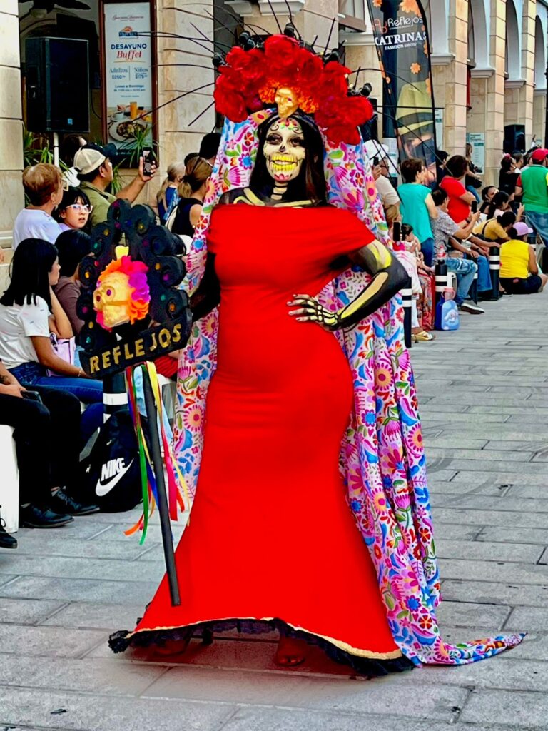 El evento, que comenzó a las 16:30 horas, transformó la calle en una auténtica pasarela del Mictlán, donde más de sesenta catrinas emergieron entre luces, música y aplausos, caminando con paso solemne y artístico hacia el más allá simbólico. Cada una representó una visión distinta de la muerte, fusionando lo ancestral con lo contemporáneo.