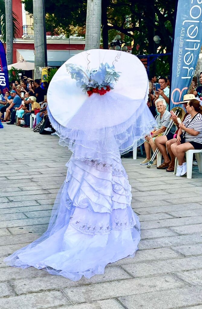 Los vestuarios fueron un derroche de imaginación: telas de terciopelo, encajes, tul y materiales reciclados se entrelazaron con báculos, sombrillas, abanicos, tocados florales y sombreros monumentales. Los zapatos, por su parte, parecían salidos de un sueño surrealista, elevando aún más la figura majestuosa de cada catrina.
