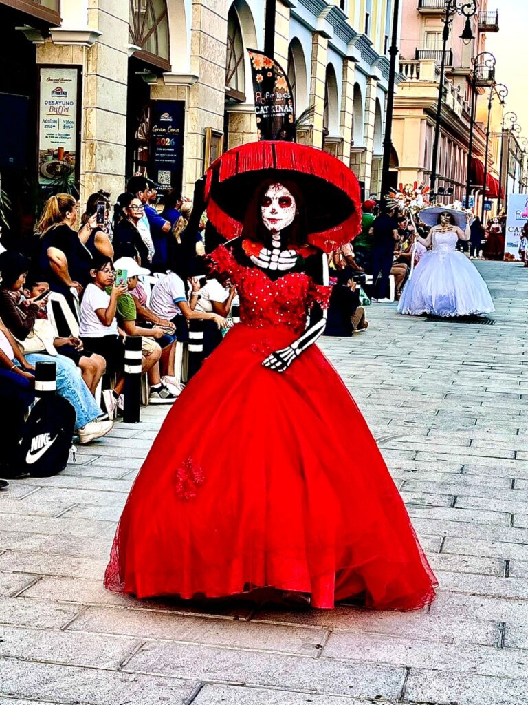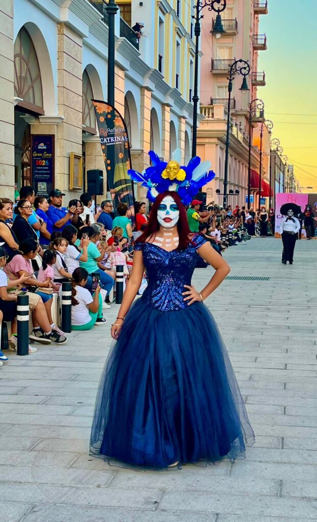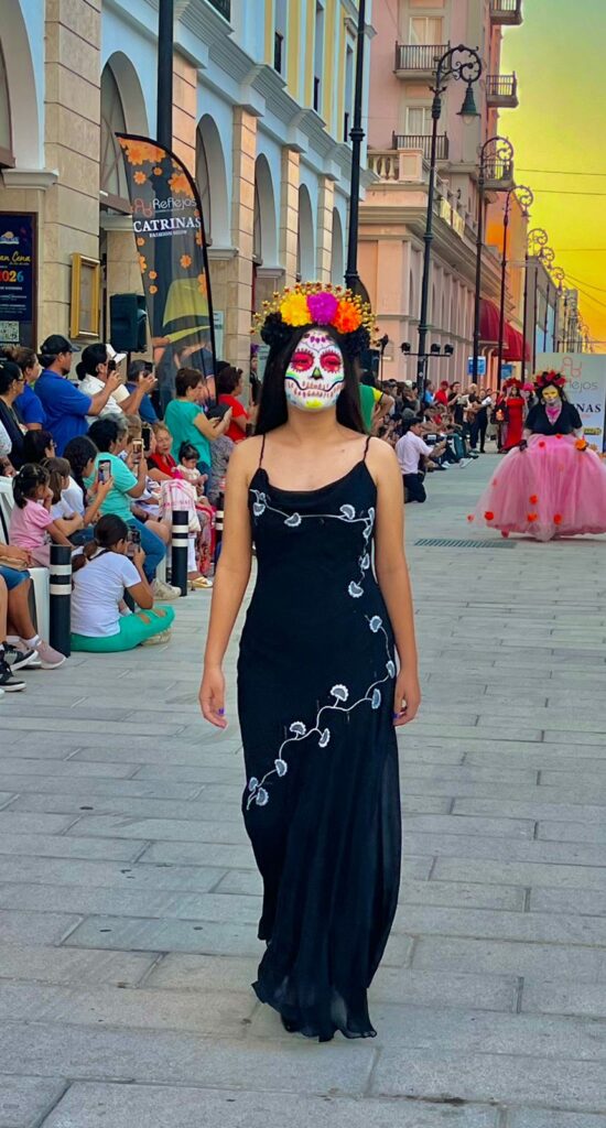 Veracruz, Ver. — La muerte desfiló con elegancia, color y tradición sobre la avenida Independencia, frente al histórico Hotel Diligencias, durante el Fashion Show “Tradiciones Mexicanas”, organizado por la Academia de Belleza Reflejos “Catrinas”, que llenó de vida y arte el centro del puerto jarocho la tarde de este lunes.