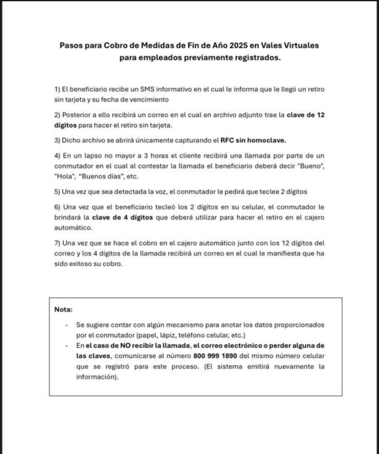 “Nos hicieron firmar una constancia y desde el pasado viernes 26 de diciembre estamos esperando una llamada, un correo electrónico o un mensaje por vía WhatsApp de Bancomer para hacer el retiro sin tarjeta y éste no ha llegado”, señala la afectada.