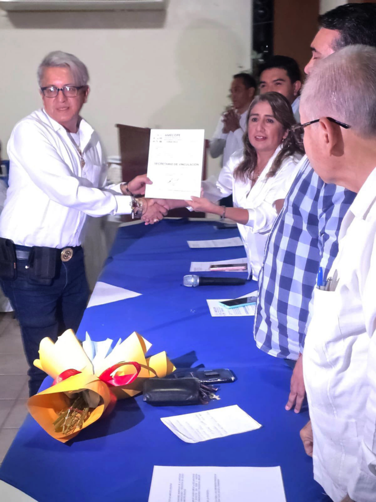 La ceremonia, realizada en el Salón Dovela del Hotel Arcos del Parque, contó con la presencia y respaldo de los líderes estatales de AMECOPE, Omar Quezada Bielma y el Lic. Juan de Dios Sánchez Abreu, quienes entregaron los nombramientos a la nueva directiva.