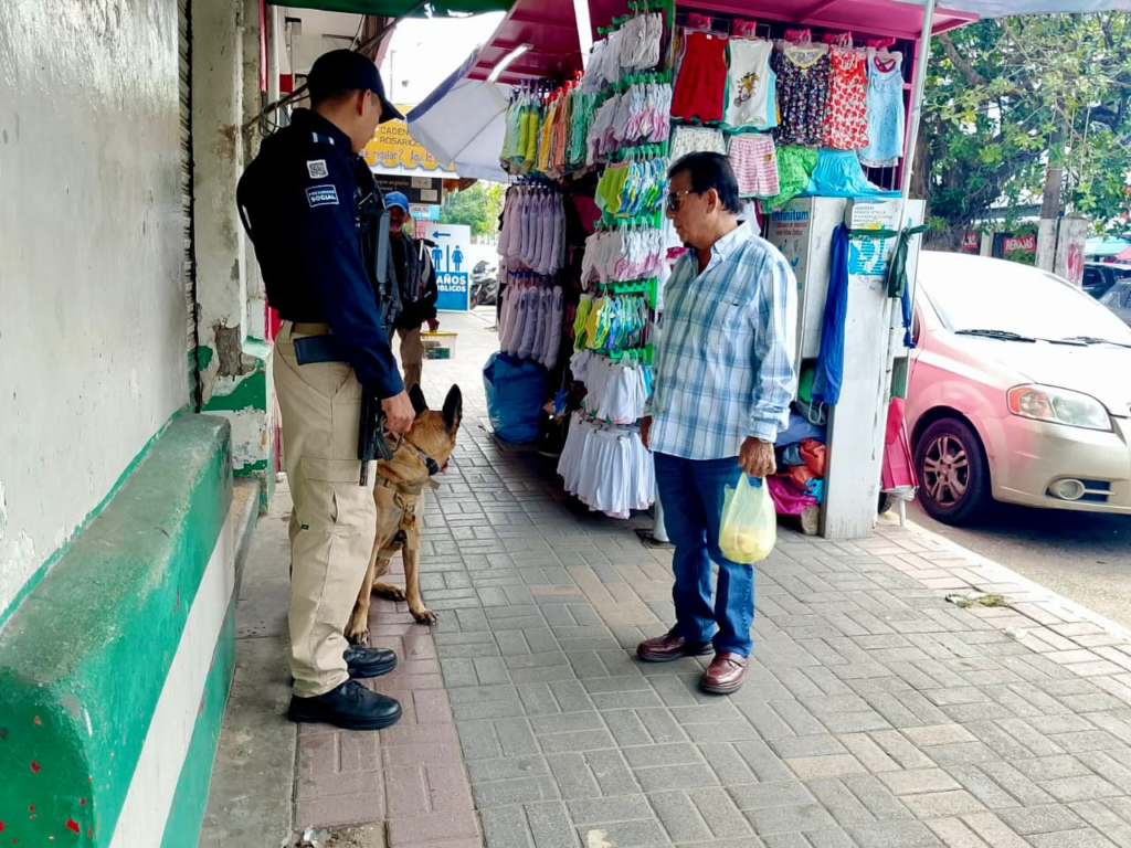 Estas actividades tienen como objetivo fortalecer la confianza entre la ciudadanía y los cuerpos de seguridad, así como promover una cultura de prevención y cercanía. Durante los recorridos, los elementos policiales, acompañados de binomios caninos, interactuaron con comerciantes, trabajadores y visitantes, brindando información útil en materia de seguridad y atendiendo inquietudes de manera directa.