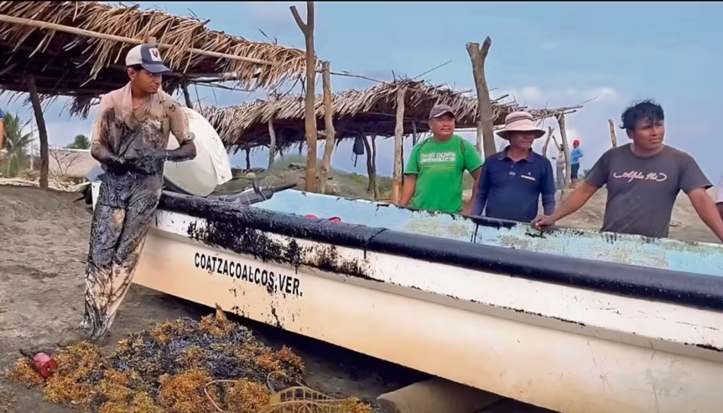 La aparición de hidrocarburo se registró en distintas playas del municipio de Pajapan, además pescadores que entraron al mar regresaron con sus embarcaciones y sus artes de pesca llenas de crudo.