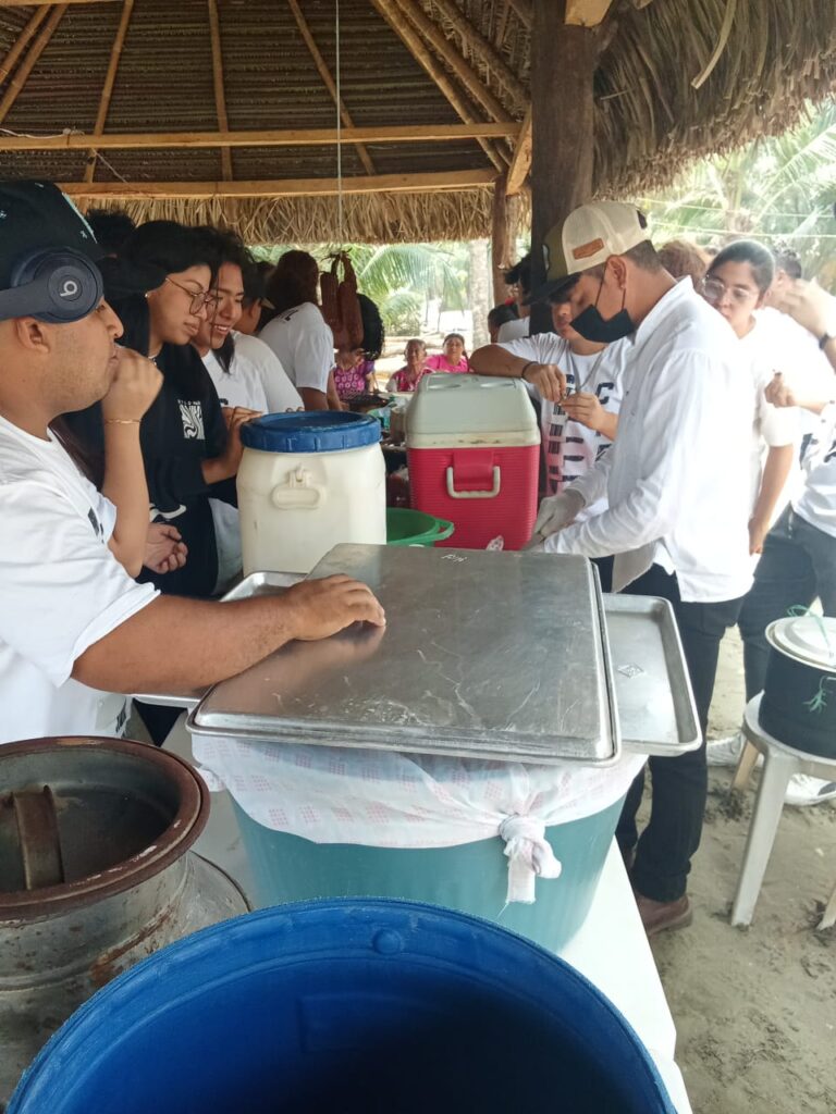En este contexto, y como parte de las actividades que iniciaron en Barrillas y continuaron en Jicacal, cocineras comunitarias compartieron su conocimiento con estudiantes de gastronomía de la IEMOL, quienes aprendieron sobre las técnicas tradicionales de nixtamalización, así como los distintos tipos de maíz y masa que forman parte fundamental de la gastronomía mexicana.