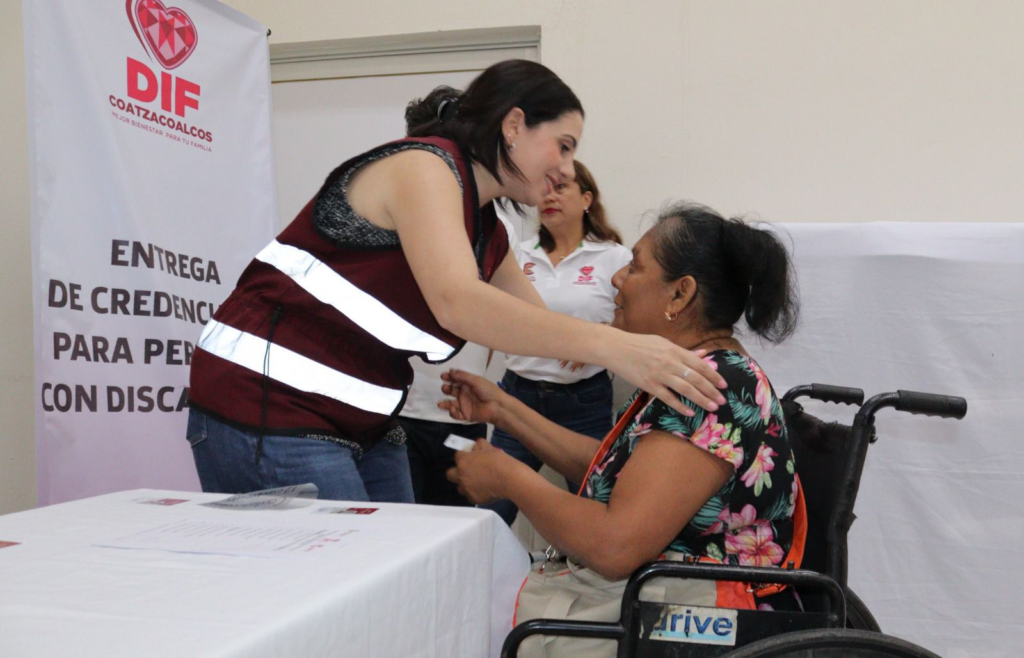 Coatzacoalcos, Ver; – Sonia Marie Salvador Goraieb, presidenta del DIF Coatzacoalcos, hizo entrega de catorce credenciales para personas con discapacidad, con el objetivo de facilitar su acceso a servicios y beneficios en todo el país y reafirmar el compromiso de atención cercana y humana hacia la población vulnerable.