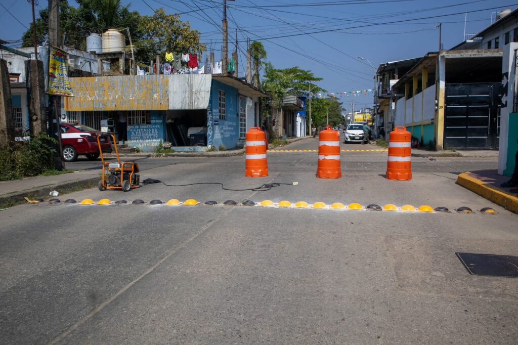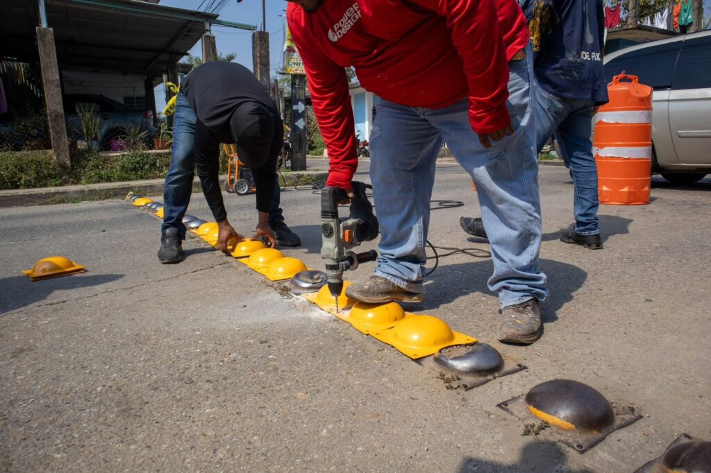 El Departamento de Tránsito y Vialidad realizó la colocación de boyas metálicas y señaléticas restrictivas con sentido de circulación en la calle Constitución, esquina Guadalupe Victoria, en la colonia Playón Sur.